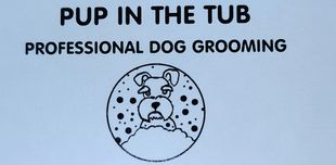 Pup in the tub groomer Lillian